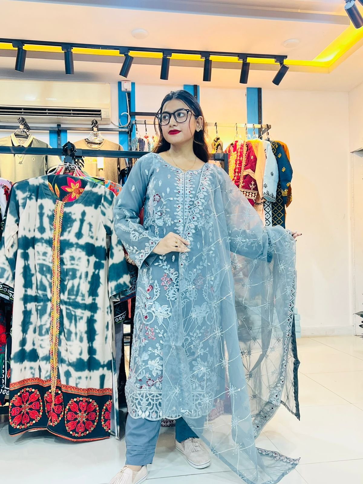 এই থ্রি-পিসে ব্যবহার করা হয়েছে সফট জর্জেট ও লাইটওয়েট অর্গানজা ফেব্রিক, যা আপনাকে দেবে অতুলনীয় আরাম ও ফ্যাশনের নিখুঁত অনুভব। পাকিস্তানি ডিজাইনের আধুনিক ছোঁয়া ও হ্যান্ডফিনিশ লুক এটিকে করেছে অনন্য।