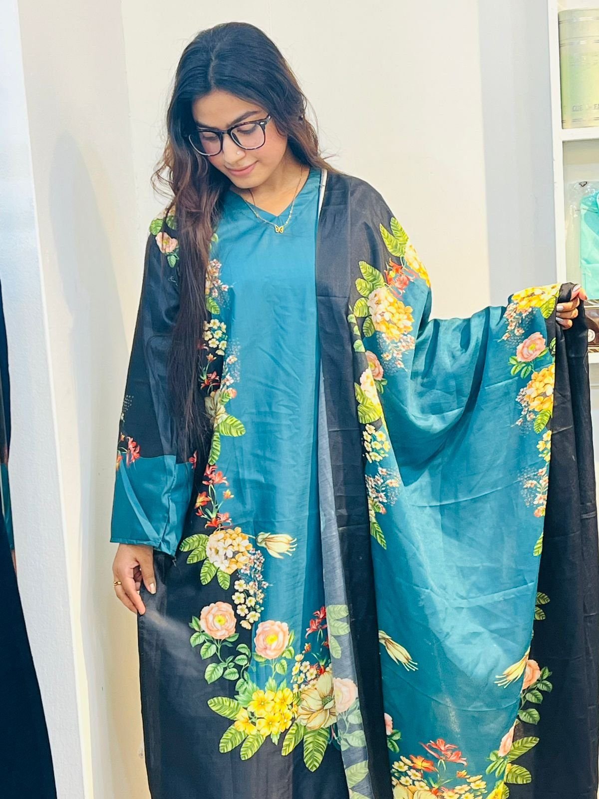 🧕 ফ্যাশনেবল থ্রি-পিস – দুবাই সিল্কে রাজকীয় স্টাইল